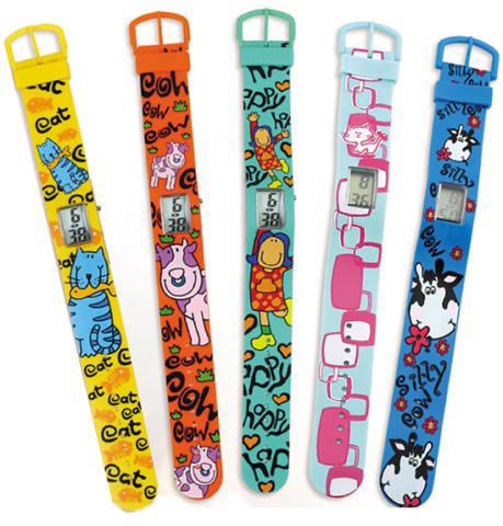 素材はPVC、LCD時計、本体フルカラーオリジナル印刷