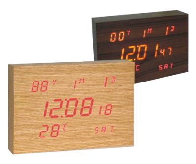 DIGITAL WOOD ALARM CLOCK W/THERMOMETER