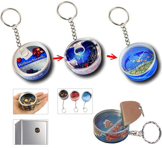MINI TIN CAN CLOCK KEYCHAIN